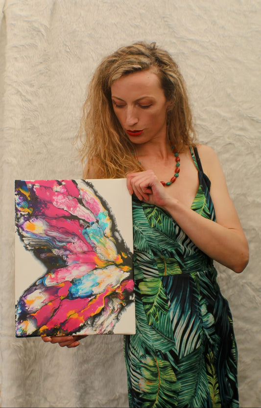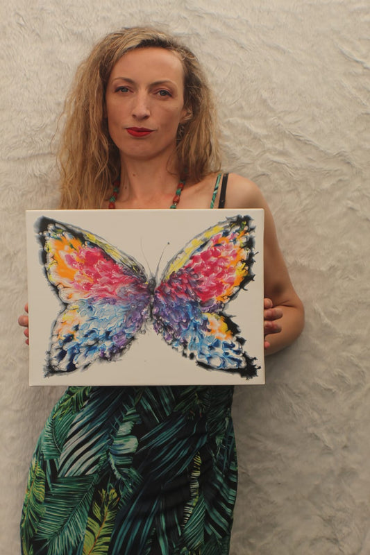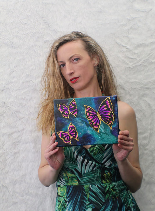 "Butterflies in Space" Original Mixed media canvas wall art painting