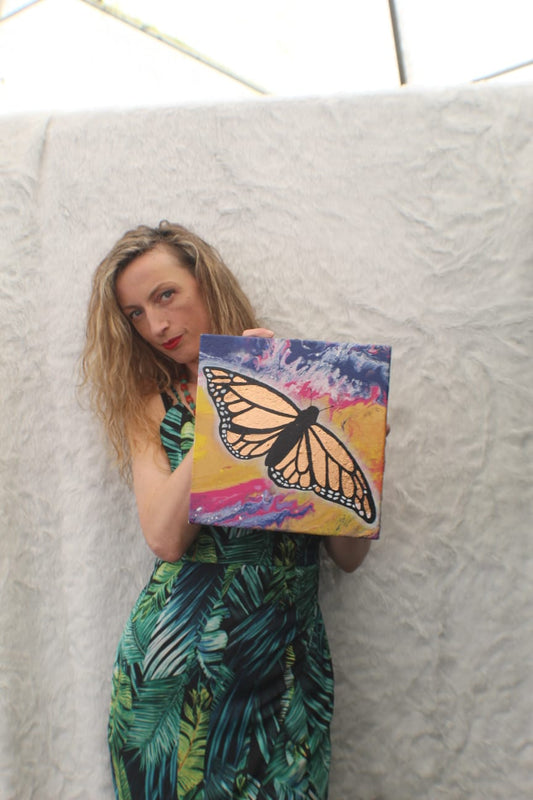 "Sunset Voyage" Mixed media butterfly original wall art canvas painting